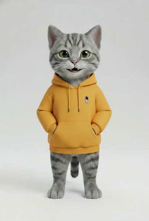 From hoodies to halo rings — our AI kittens try on anything. Each video is generated in seconds.